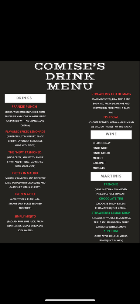 Welcome to Comise's Bar and Grill, a delightful gem located at 1005 W Laraway Rd in New Lenox, IL. Specializing in authentic Mexican cuisine, this vibrant venue serves up dishes that promise to tantalize your taste buds. Start your experience with a selection of PreGamers like the crispy Mozzarella Sticks or hearty Fried Mushrooms, each served with flavorful marinara.